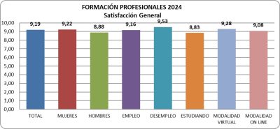 En la valoración de la formación por parte del alumnado, destacamos que la media de satisfacción es de 9,19 sobre 10.