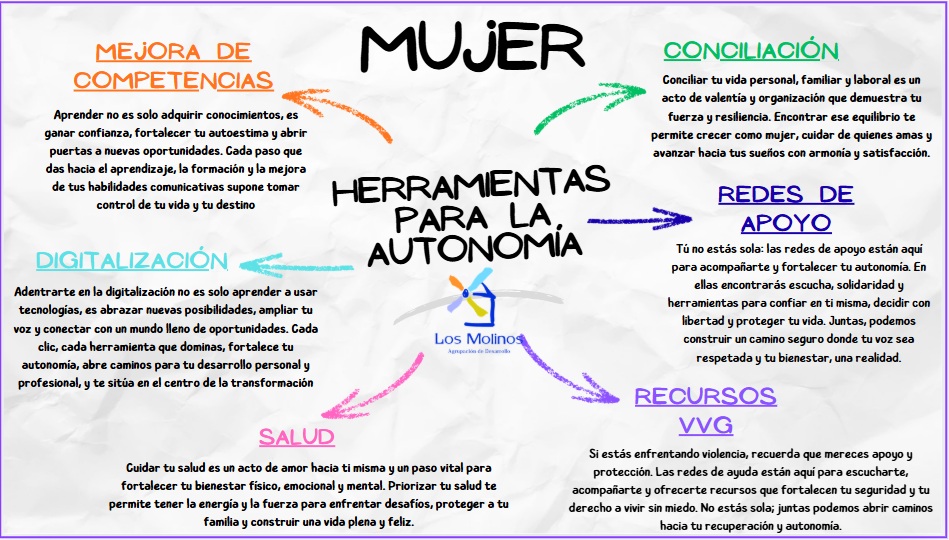 VÍDEOS Entrevista Asociación AD Los Molinos 2021 ESTRATEGIAS DE CONCILIACIÓN PARA LA INSERCIÓN LABORAL Actividades Asociación AD Los Molinos durante COVID19 Proyecto EMPLEABILIDAD EN (y con) FAMILIA. Premio a la Innovación Social de La Caixa Obra Social. Itinerarios Personalizados de Inserción Laboral Asociación AD Los Molinos, 2017. 15 aniversario. William: experiencia de inserción laboral Proyecto Empleabilidad en Familia Jornadas 2017 Sesión de EmpleoRECURSOS DE FORMACIÓN Y EMPLEO Guía de Recursos de Formación y Empleo Agenda para Búsqueda de Empleo Mapa de Activos para la empleabilidad Búsqueda activa de empleo a través del móvil Imagen personal para la búsqueda de empleo Entrevista de trabajo SHERCO Entrevista de trabajo CONREFORM Entrevista de trabajo SACYR SOCIAL Entrevista de trabajo SACYR FACILITIES Guía Recursos Carabanchel y Latina Plano Recursos Carabanchel (Madrid) Plano Recursos Latina (Madrid)RECURSOS DE AUTOEMPLEO Sufu Cake emprendedora PAI AD Los Molinos Entrevista Talleres de Apoyo Emprendedores/as El Escorial Presentación Servicio Autoempleo y Emprendimiento. Vídeo Factoría de Empresas, claves para el empleo y el desarrollo local (Web) Emprender siendo extranjero/a Jornadas 2017 Sesión de AutoempleoRECURSOS DE INTEGRACIÓN SOCIAL y PREVENCIÓN VG GUÍA PARA MUJERES MIGRANTES VVG GUÍA DE ATENCIÓN A VÍCTIMAS VG Herramientas para la Autonomía Sierra Oeste Madrid INFOGRAFÍA VIOLENCIA DE GÉNERO INFOGRAFÍA VIOLENCIA DE GÉNERO (árabe) Homologación de estudios Estudio Evolución del programa ACOGIDA, PARTICIPACION Y CONVIVENCIA PARA MUJERES INMIGRANTESESTUDIOS E INVESTIGACIONES Estudio Mujer Inmigrante en el Servicio Doméstico Jornada Difusión Estudio La mujer inmigrante en el servicio doméstico Junio 2017 Jornada Resultados Estudio la mujer inmigrante en el servicio doméstico Diciembre 2017