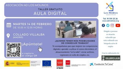 - Requisitos: Conocimientos de español nivel medio. Estar inscrita/o en el Servicio de Empleo de Asociación AD Los Molinos.