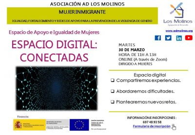 - Contenido: Taller mensual en el que mes a mes avanzaremos juntas en el mundo digital, explorando aquellos aspectos que nos facilitar estas «conectadas».(último martes de cada mes).