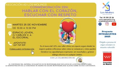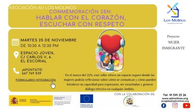 - Contenido: En el marco del 25N, este taller ofrece un espacio seguro donde las mujeres podrán reflexionar sobre cómo se comunican y cómo pueden fortalecer su capacidad para expresarse, ser escuchadas y generar diálogo efectivo en cualquier ámbito.