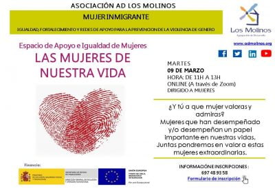 - Contenido: Juntas pondremos en valor el papel fundamental que han desempeñado algunas mujeres en nuestras vidas, aquella mujeres anónimas que te han ayudado a levantarte, que te han alentado para que sigas, en definitiva mujeres muy valiosas.