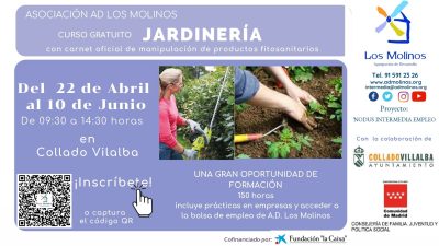 - Requisitos: Conocimientos de español nivel medio. Estar dado/a de alta en el Servicio de Empleo de Asociación AD Los Molinos.