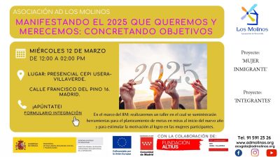 - Contenido: En el marco del 8M: realizaremos un taller en el cual se suministrarán herramientas para el planteamiento de metas en miras al inicio del nuevo año y para estimular la motivación al logro en las mujeres participantes.
