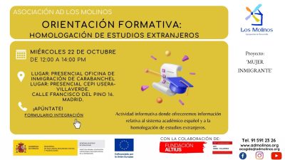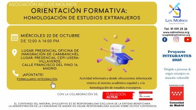 - Contenido: Actividad informativa donde ofreceremos información relativa al sistema académico español y a la homologación de estudios extranjeros.