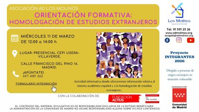 - Contenido: Actividad informativa donde ofreceremos información relativa al sistema académico español y a la homologación de estudios extranjeros.