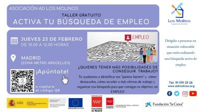 - Dirigido: Personas residentes en la COMUNIDAD DE MADRID, en búsqueda activa de empleo y en situación vulnerable.