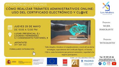 - Contenido: Taller en el que se mostrarán las ventajas de usar el Certificado Digital y el Sistema Cl@ve para realizar trámites en España.
