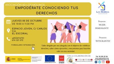 - Contenido: Taller dirigido por una abogada con el objetivo de visibilizar derechos, saber cómo ejercerlos y mecanismos para hacerlos valer en esta sociedad.