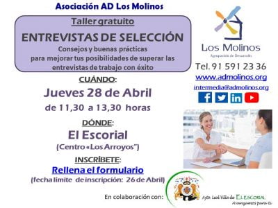 - Dirigido: Personas residentes en El Escorial, en búsqueda activa de empleo y en situación vulnerable