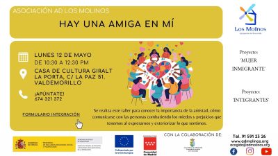 - Contenido: Taller en el que se mostrara la importancia de la amistad, se darán consejos para combatir miedos y prejuicios a la hora de comunicarse y conocer herramientas necesarias para exteriorizar las emociones.