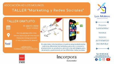 - Contenido: En este taller informaremos a nuestros emprendedores/as sobre las diferentes herramientas para dar a conocer y promocionar un producto o servicio y las estrategias para alcanzarlo y posicionarlo en las diferentes redes sociales.
