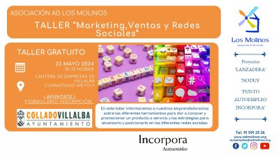 - Contenido: En este taller informaremos a nuestros emprendedores/as sobre las diferentes herramientas para dar a conocer y promocionar un producto o servicio y las estrategias para alcanzarlo y posicionarlo en las diferentes redes sociales.