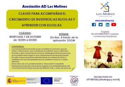 - Contenido: De la mano de una profesional de la Educación Consciente trataremos de aportar claves para mejorar el acompañamiento del crecimiento de los hijos/as para así disfrutar mas y mejor de ellos/as.