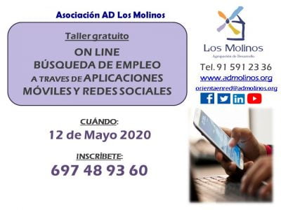 - Requisitos: Conocimientos de castellano nivel medio, como mínimo. Estar dado/a de alta en el Servicio de Empleo de Asociación AD Los Molinos. Teléfono y/o ordenador con acceso a internet
