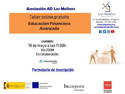 - Contenido: Taller para conocer conceptos financieros básicos y así afrontar la toma de dediciones financieras con mayor seguridad. Taller impartido por los Voluntarios de La Caixa