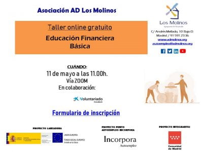 - Contenido: Taller para conocer conceptos financieros básicos y así afrontar la toma de dediciones financieras con mayor seguridad. Taller impartido por los Voluntarios de La Caixa