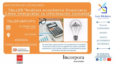 - Contenido: En este taller explicaremos a los asistentes los conceptos financieros básicos para la gestión de vuestra actividad empresarial y para poder realizar correctamente la parte económica del plan de empresa.