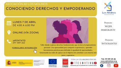 - Contenido: Taller donde explorar derechos fundamentales que inviten al empoderamiento personal. Una oportunidad para compartir experiencias y aprender herramientas prácticas para defender la igualdad de oportunidades, fomentando las redes de apoyo con el objetivo de contribuir a un entorno más justo y equitativo.