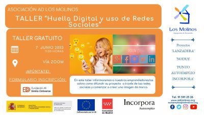 - Contenido: En este taller informaremos a nuestros emprendedores/as sobre como difundir su proyecto a través de las redes sociales y comenzar a crear una imagen de marca.