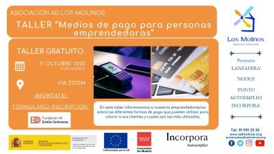- Contenido: En este taller informaremos a nuestros emprendedores/as sobre las diferentes formas de pago que pueden utilizar para cobrar a sus clientes y cuales son las más utilizadas.