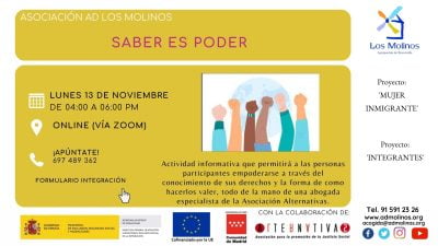 - Contenido: Actividad informativa que permitirá a las personas participantes empoderarse a través del conocimiento de sus derechos y la forma de como hacerlos valer, todo de la mano de una abogada especialista de la Asociación Alternativas.