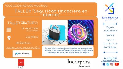 - Contenido: En este taller aprenderás cómo realizar compras seguras online, a crear contraseñas seguras, a operar con la banca en internet y a evitar caer en la trampa del «phising»