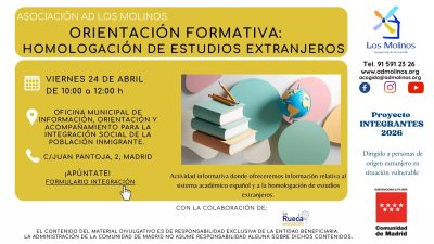- Contenido: Actividad informativa donde ofreceremos información relativa al sistema académico español y a la homologación de estudios extranjeros.