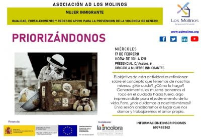 - Contenido: Reflexionar sobre el concepto que tenemos de nosotras mismas. ¿Me cuido? ¿Cómo lo hago? En la sesión analizaremos el lugar que nos damos y trabajaremos el amor propio.