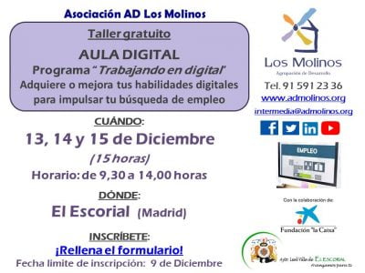 - Dirigido: Personas residentes en la COMUNIDAD DE MADRID, en búsqueda activa de empleo y en situación vulnerable.