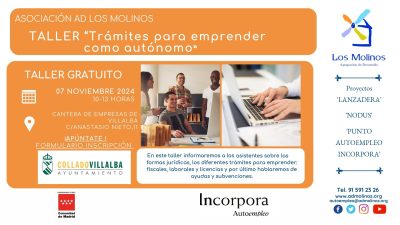 - Contenido: En este taller informaremos a los/as asistentes sobre las formas jurídicas, los diferentes trámites para emprender: fiscales, laborales y licencias y por último hablaremos de ayudas y subvenciones.