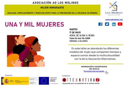 - Contenido: En este taller se abordarán los diferentes modelos de mujer que comparten tiempos y espacio común desde la multiculturalidad con la colaboración de la Asociación Alternativas.
