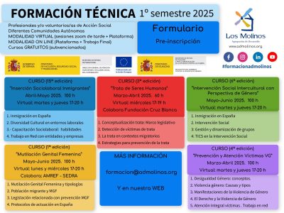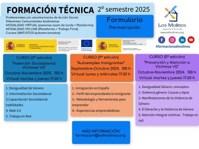 Desde la Asociación AD Los Molinos en 2025 presentamos nuestra oferta formativa, con 8 cursos, organizados por semestres: